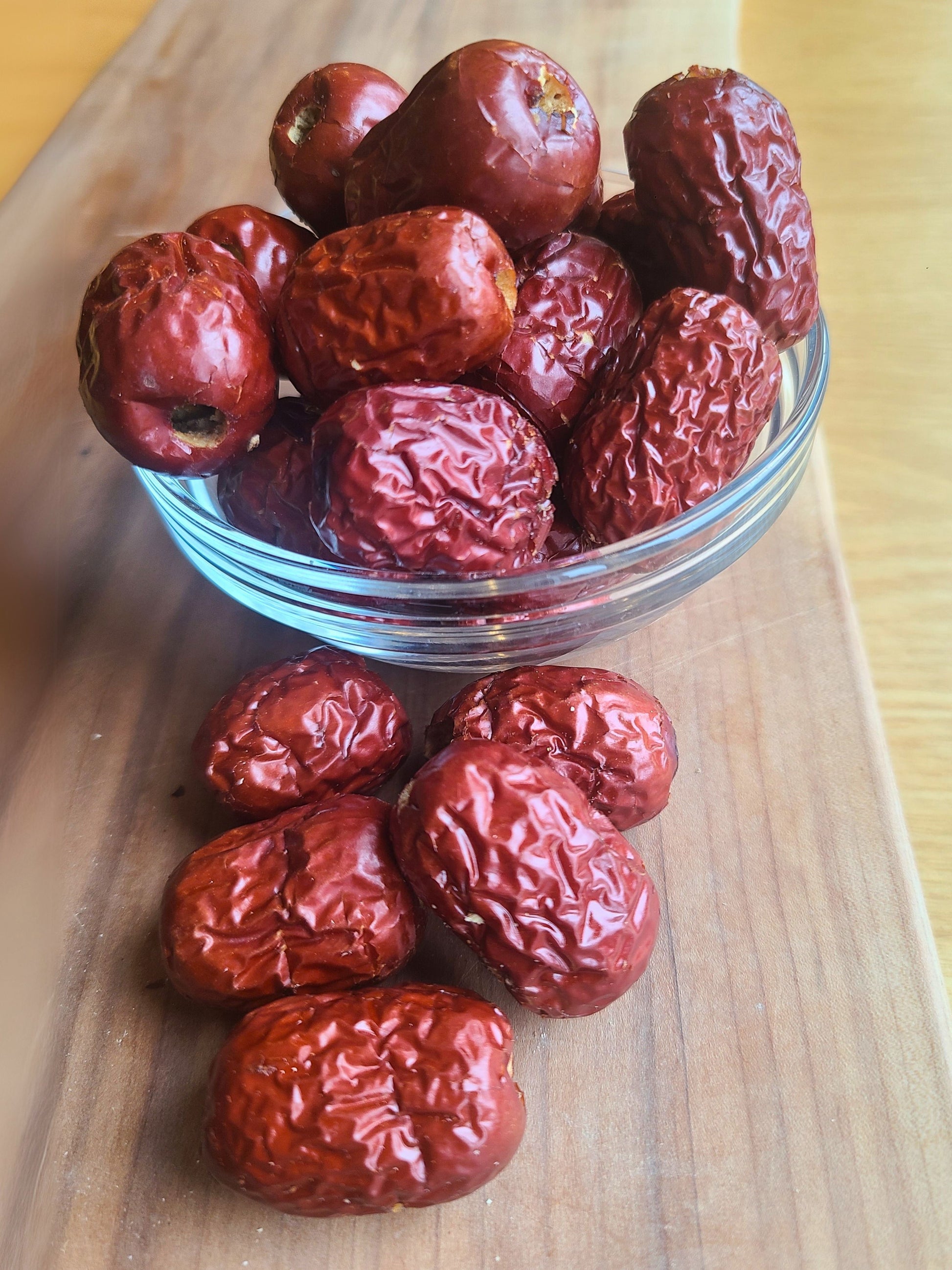 These small, shriveled, bright red fruits come in various sizes and forms, with or without seeds. Harvested from the Ziziphus zizyphus tree, they are commonly used in soups, teas, desserts, and stews, and can also be eaten as dried snacks.