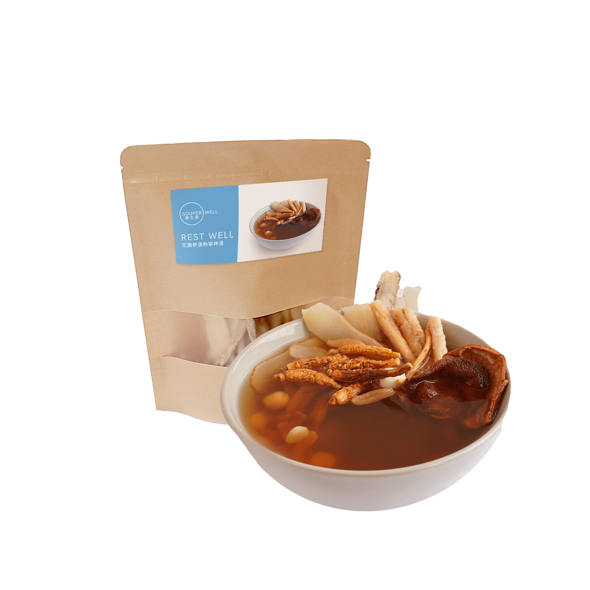 每袋內含兩個獨立包裝的湯袋,每個可供2-3人食用。
